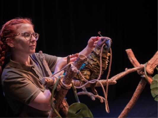 The lively puppets are absolutely brilliant, beautifully made by Marc Parrett and sensitively manipulated so they capture the distinctive characteristics and movements of the animals. Their delightful, emotionally engaging personalities let the audience connect with and understand the fragility of their life experiences. At times they cause a rollercoaster of emotions, shifting from laugh out loud comedy with slapstick hijinks to deeply moving and personal revelations